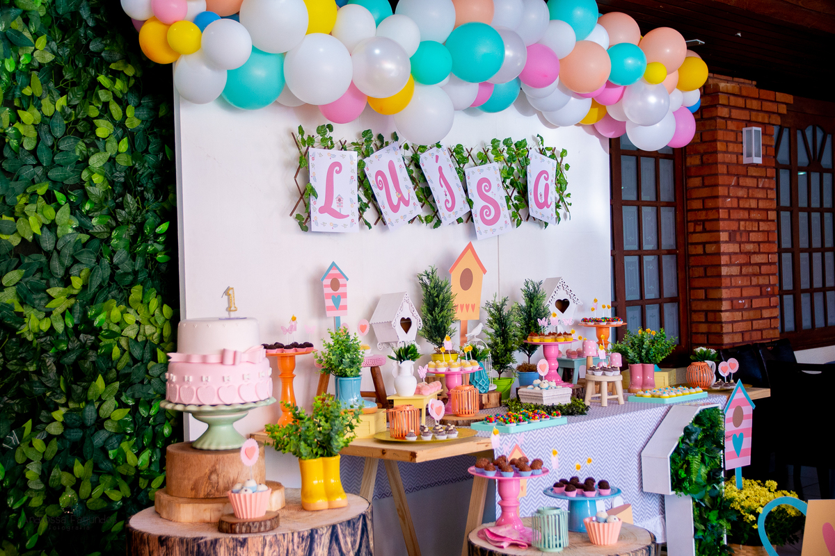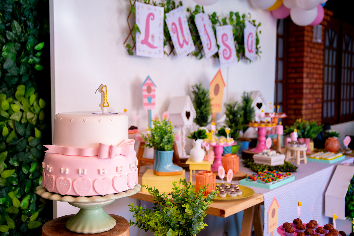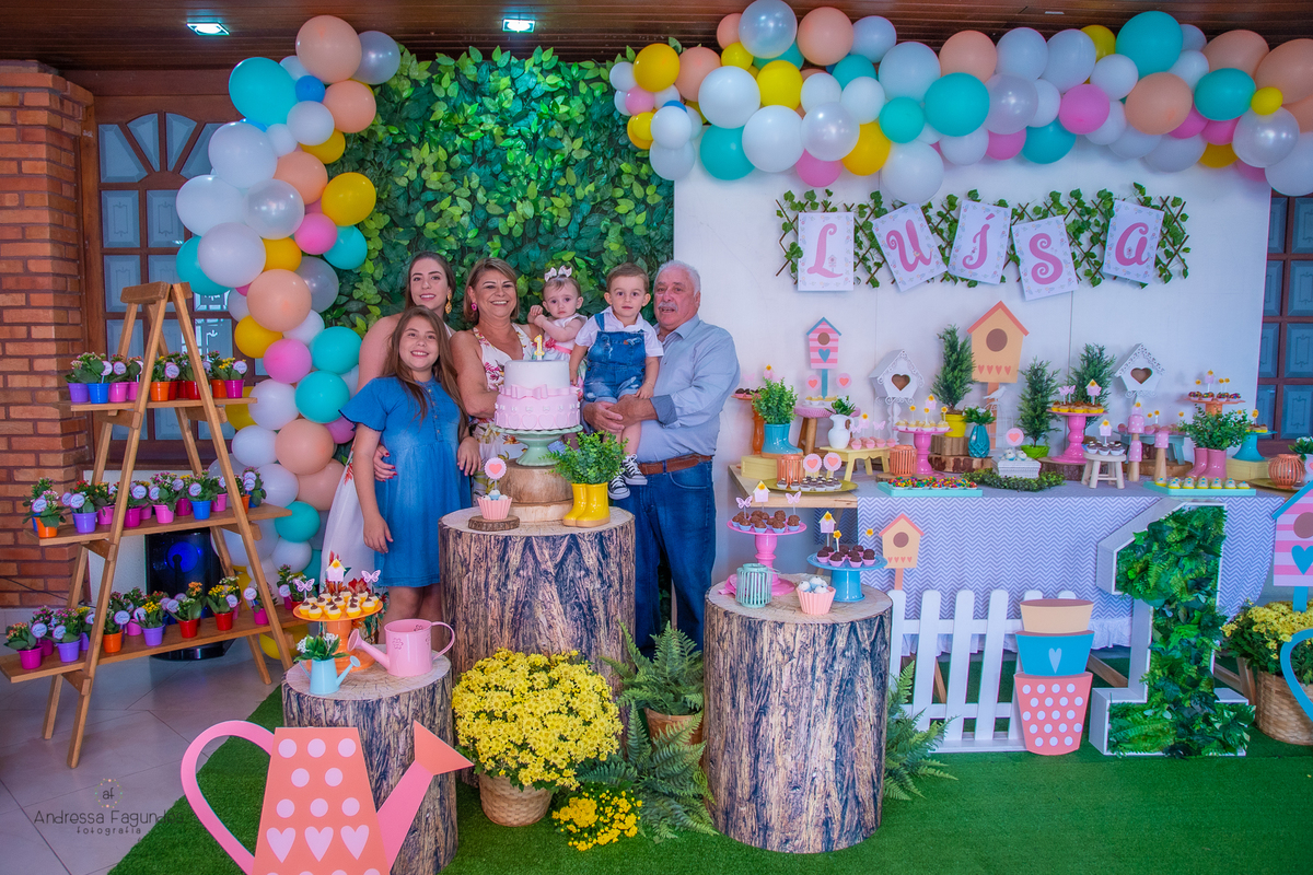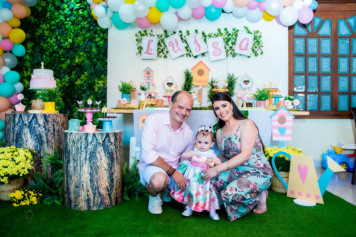 Assim foi a festa da pequena borboletinha Luísa, um docinho de bebê, e visivelmente amada por todos aqueles que estiveram comemorando seu primeiro aninho.